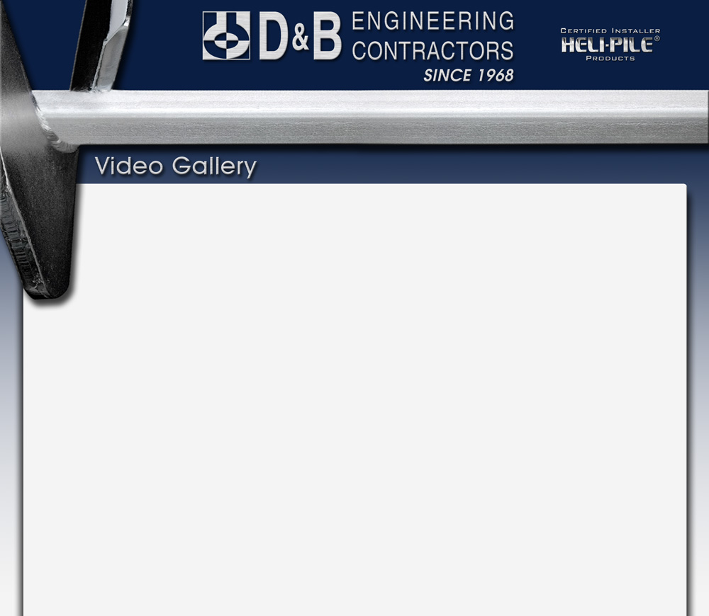 D&B Engineering Contractors, Helical Pile Installation D&B Engineering Contractors-About Helical Piles Commercial and Industrial applications for Helical Piles Residential Applications for Helical Piles About D&B Engineering Contractors Photos and Video of Helical Pile Projects Contact Information for D&B Engineering Contractors Frequently Asked Questions About Helical Piles